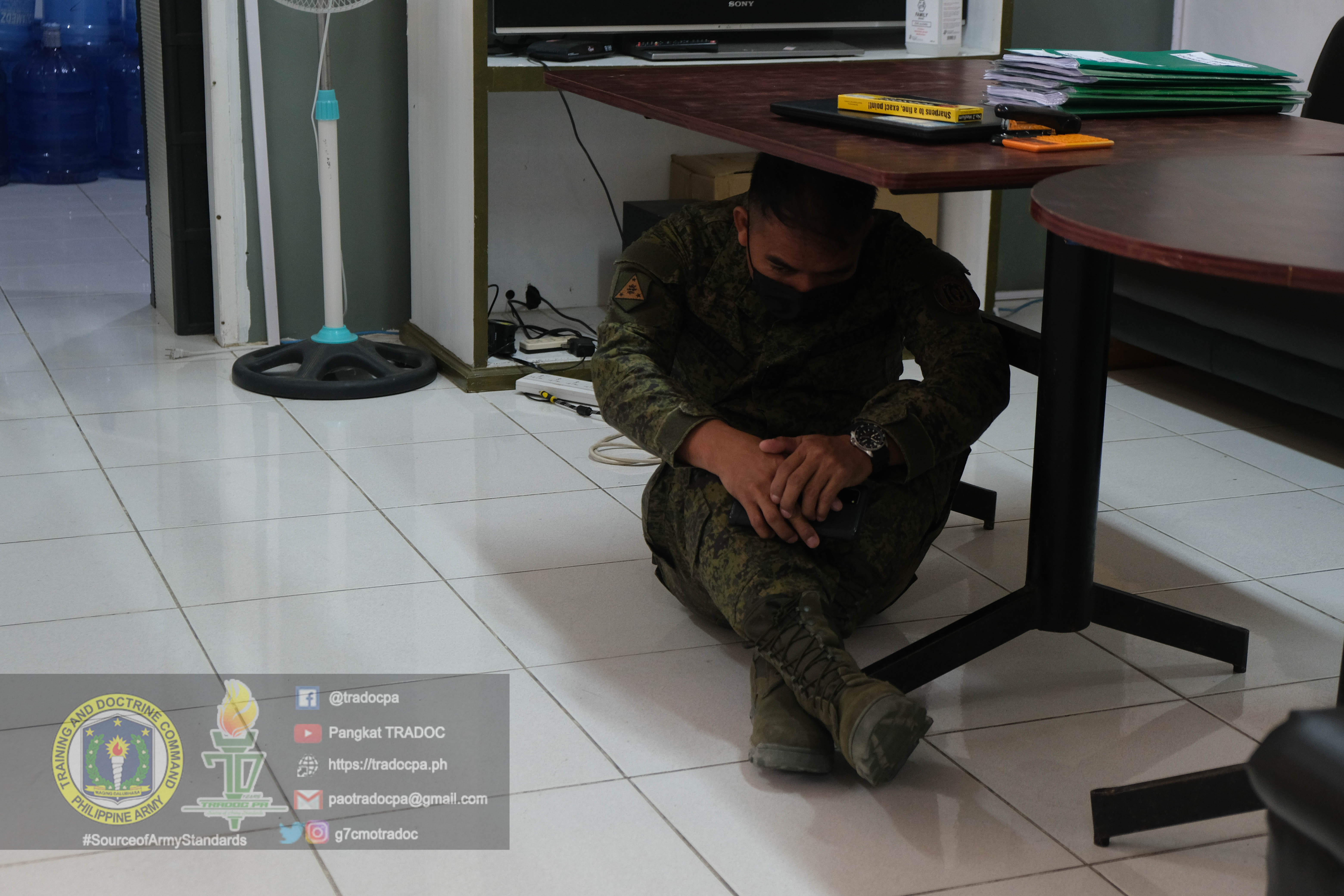 Camp O’Donnell, Capas, Tarlac – The Training and Doctrine Command (TRADOC), PA participated in the National Simultaneous Earthquake drill today November 10, 2020 at exactly 9 o’clock in the morning.