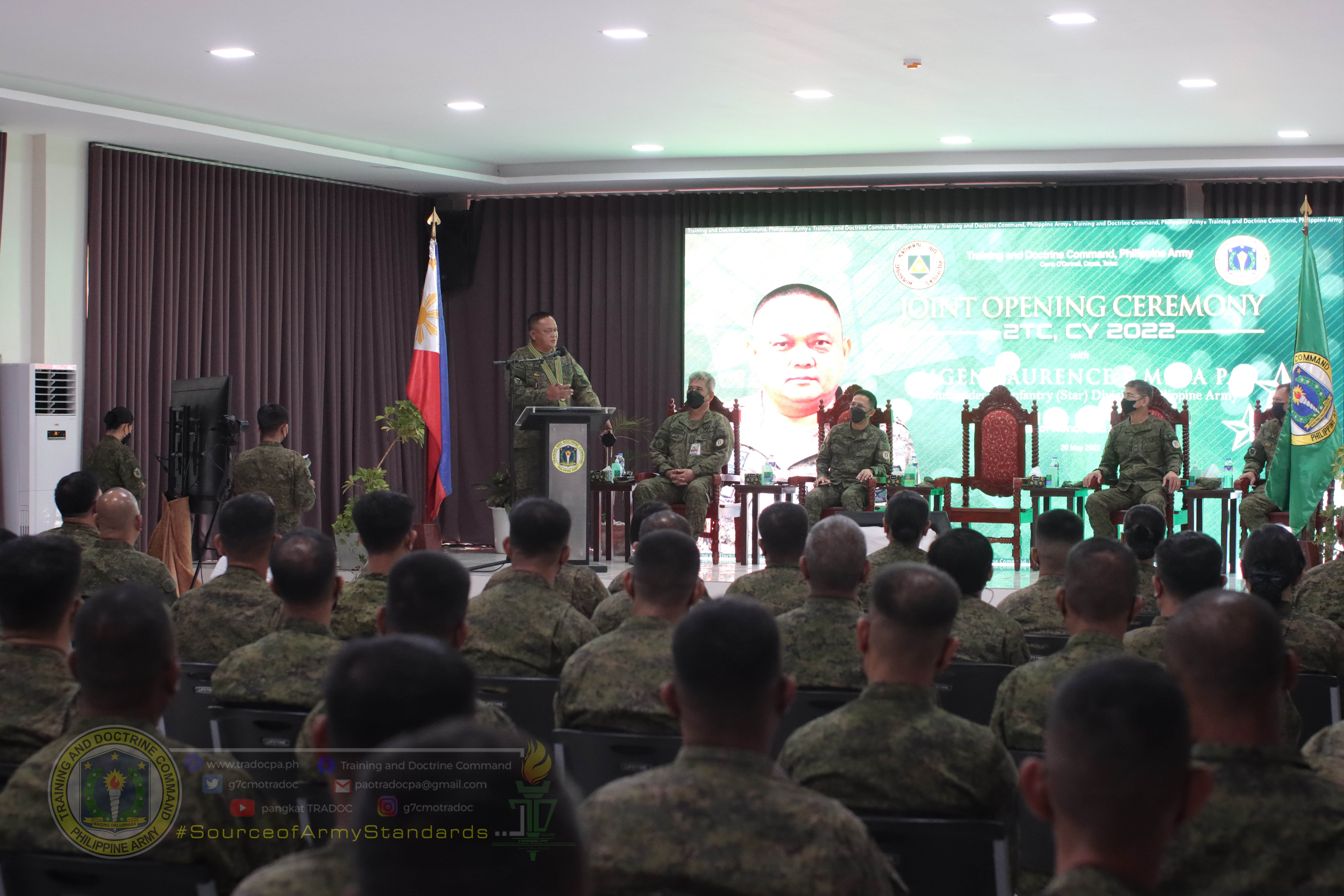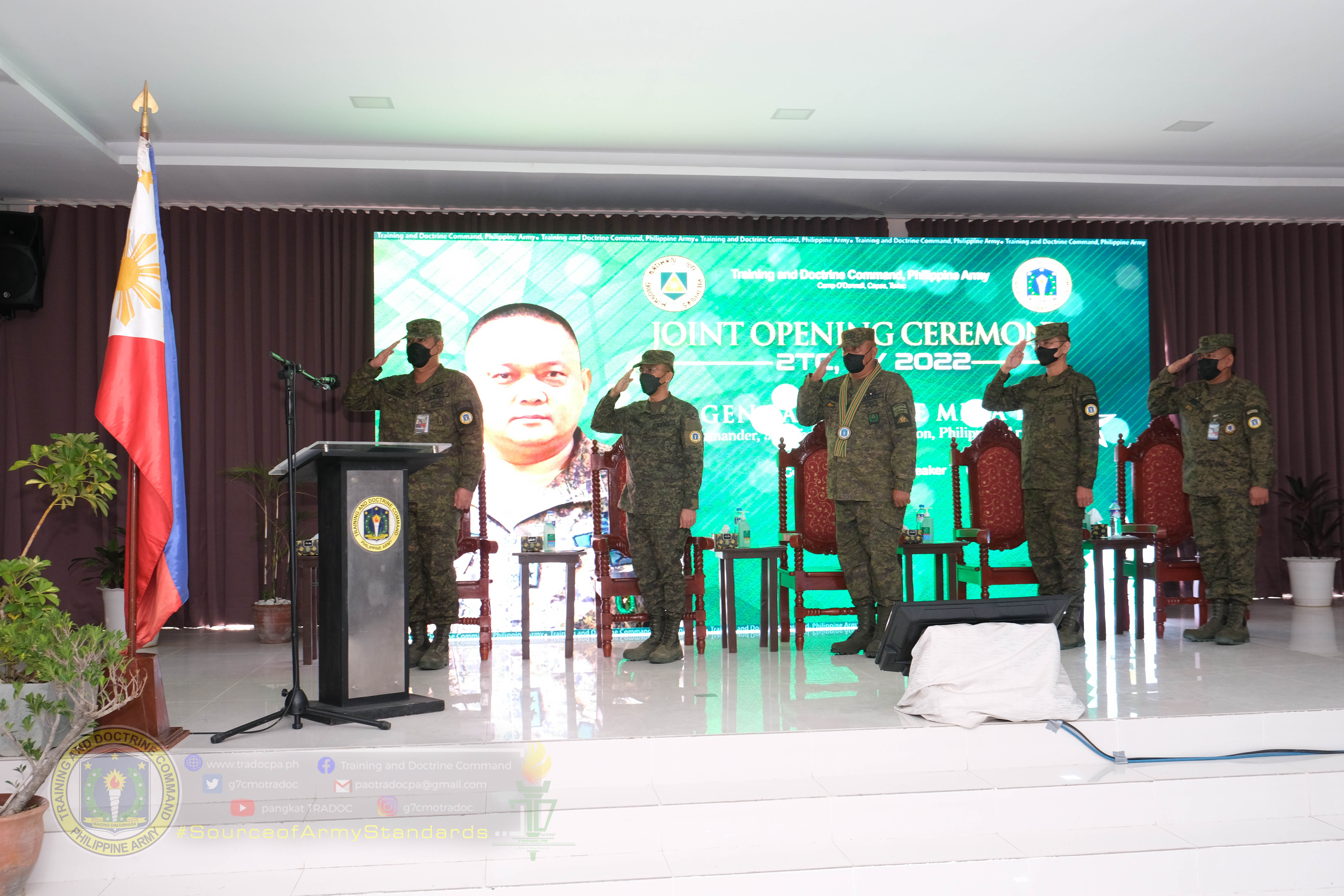 The Joint Opening Ceremony of Service Courses for 2nd Training Cycle, CY 2022 was graced by Major General Laurence E Mina, Commander of 5th Infantry (Star) Division, Philippine Army, as the Guest of Honor and Speaker (GOHAS). During the said ceremony Major General Mina challenged the students of various courses to not take the schooling just for compliance, not just for career advancement, but also for individual and personal development. “Education and training are important elements to prepare military personnel to gear up for the demands of the service. Career and specialization courses offered by the Philippine Army are designed to meet the ever-changing dynamics of the military environment. This is a key tool in achieving our vision of becoming a world-class Army,” Major General Mina stressed on his message.