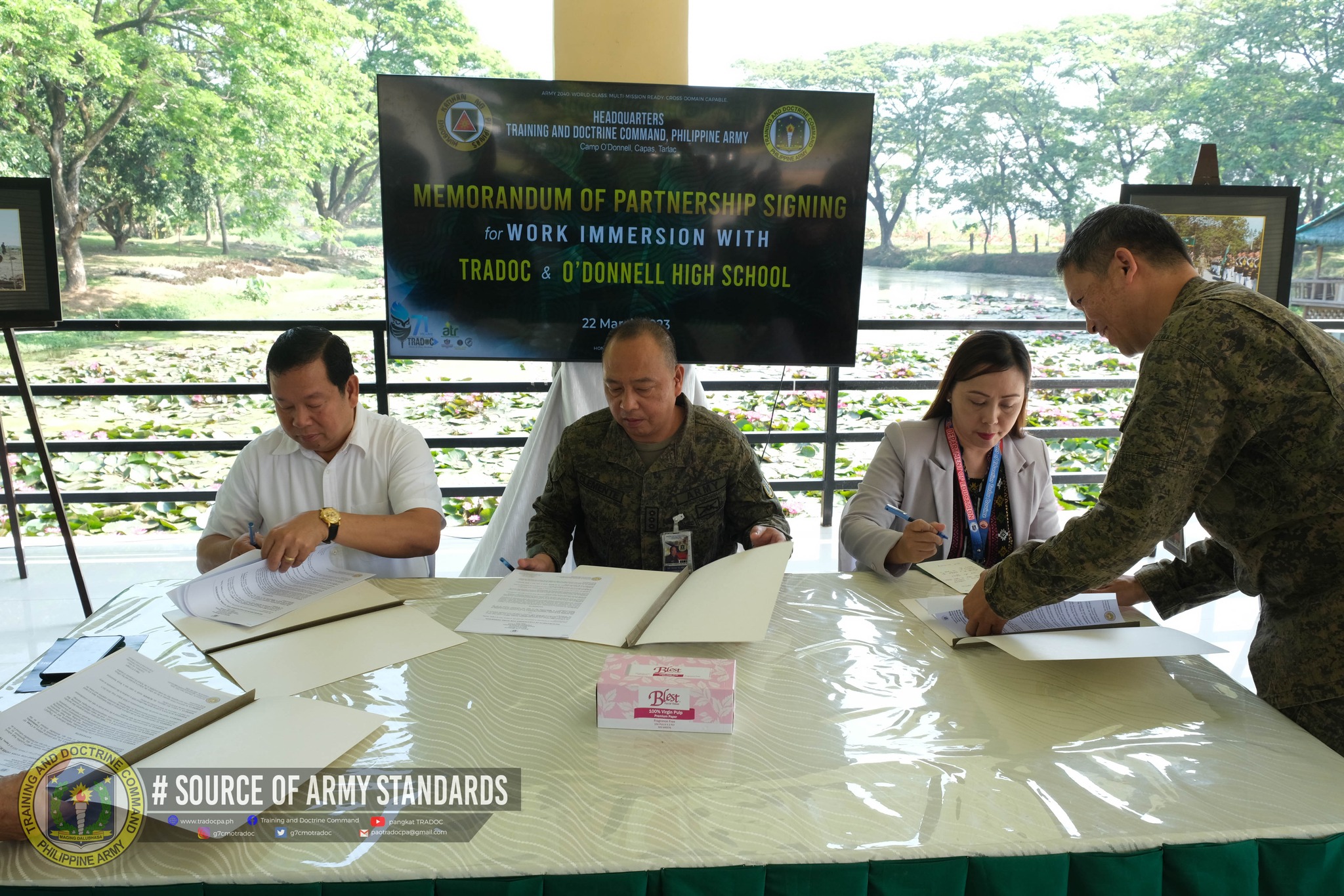 Camp O’Donnell, Capas, Tarlac – The Training and Doctrine Command (TRADOC), Philippine Army formalized its partnership with O’Donnell High School for the work immersion of Senior High School students at TRADOC on 22 March 2023.