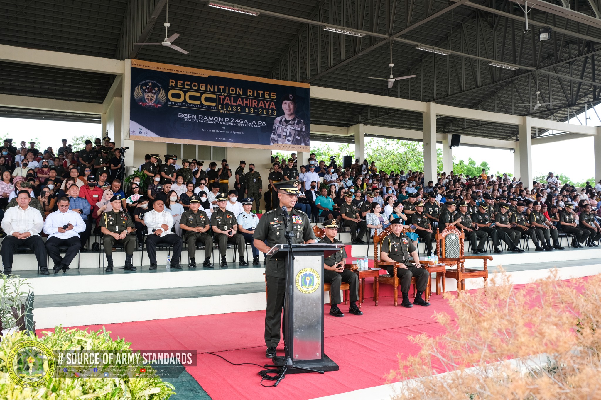 Camp O’Donnell, Capas Tarlac – The Training and Doctrine Command, Philippine Army, holds the Recognition Rites of Officer Candidate Course (OCC) Class 59-2023 “TALAHIRAYA” at Makabulos Grandstand, Camp O’Donnel, Capas, Tarlac on 25 March 2023 with Brigadier General Ramon P Zagala, Commander, Presidential Security Group, Philippine Army, as the Guest of Honor and Speaker.