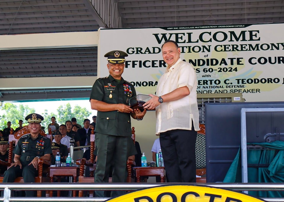 The graduation rites were graced by the Secretary of the National Defense, Honorable Gilberto C Teodoro Jr., the Guest of Honor and Speaker, Gen Romeo S Brawner Jr, Chief of Staff of the Armed Forces of the Philippines, Lt. Gen. Roy M Galido, Commanding General of the Philippine Army, MGen. Luis Rex D Bergante PA, Commander, TRADOC, PA. In his speech, Secretary Teodoro reminded the OCC “ARAMSIDLAK” Class 60-2024 of the values that the Officer Candidate School had instilled in them as they transitioned from training to active service.